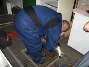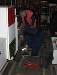Gyula, one of our drivers is a veteran bus driver and mechanic. He knows every little thing on this vehicle. He had some ideas what to check just in case... Soma (in blue), our mechanic will be his right hand man. They're fixing the gears (?) on these pics.